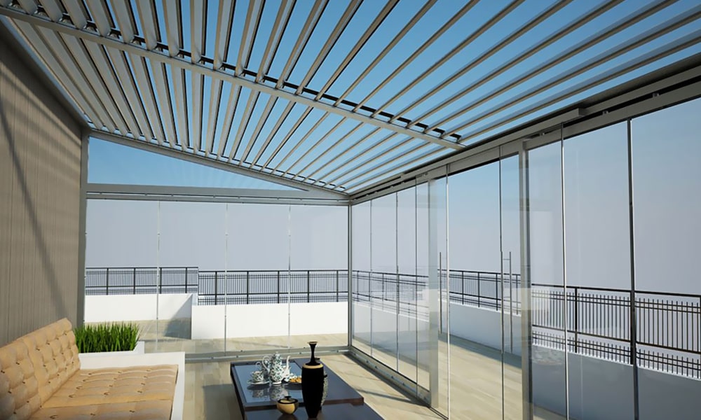 The most important feature of the Rolling roof system is that it offers a foldable roof and thus provides the opportunity to benefit from sunlight and outdoor air easily. In Rolling roof systems, it is preferred to provide flexibility to open and close spaces in line with their needs and to provide a modern appearance.